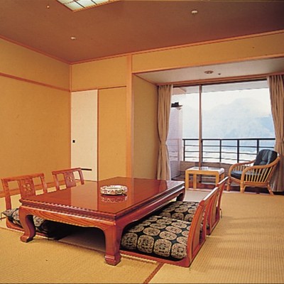 客室の窓の外には、姫川の清流と四季折々の山の景色。
