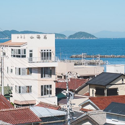 「潮騒の宿 山海荘」は、神島港から徒歩約5分の場所にある宿。伊勢湾の景色を眺めながら、島近海で揚がる新鮮な魚介を味わえるのが魅力です。