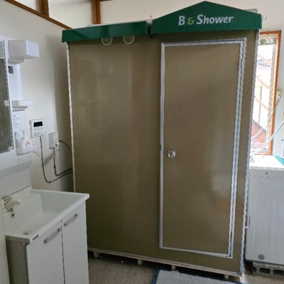 シャワー、洗面所、洗濯機あり。浴槽はありません。