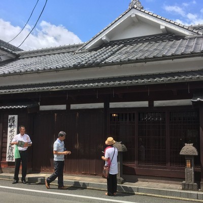 城下町の面影を残す町並み。製ろう・酒造・和紙・製茶など諸産業の会所・問屋が多かったため、大規模な古い瓦葺・妻入の町家が建築が並んでいます。現在はこれらの歴史的建造物の維持活用のため、移住者らも入りセレクトショップやカフェ、ゲストハウスなどに利用されています。