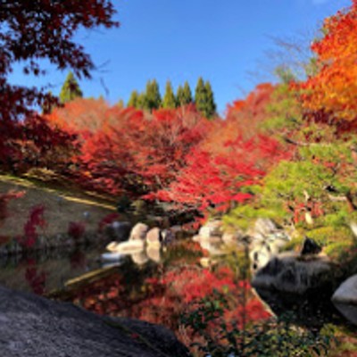 【三景園(農園から車で10分、広島空港近く)】三景園は1993年に広島空港開港記念に造られました。広島県の風景をモチーフにした日本庭園で約6ヘクタールの敷地にあります。山・里・海の三つのゾーンに分かれていて、山ゾーンでは高低差14mの三段の滝、里ゾーンでは竹林やもみじ谷など、海ゾーンでは宮島を連想させる数寄屋風水上建築の「潮見亭」などがあり、それぞれ風情ある美しい景色を四季折々の花々とともに楽しめます。鯉に餌をやったりお抹茶をいただいたりホっと息をつける観光スポットです。