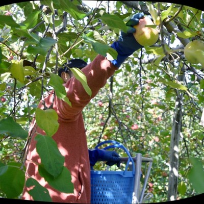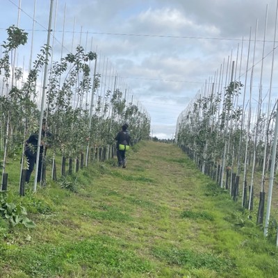 果物の実を一つにする作業です🍎ハシゴに登り、実を落としていきます✂️1日の外仕事になります☀️