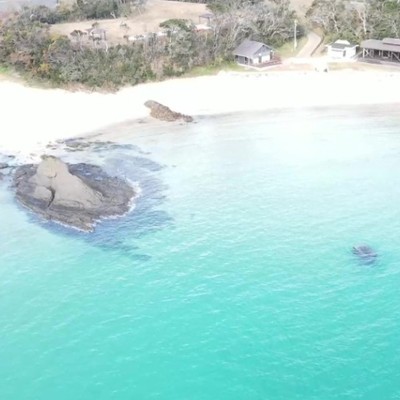【三宇田浜】「日本の渚・百選」の認定を受けた対馬で有名な海水浴場です。対馬では珍しい天然白砂の浜で、太陽光を浴びるとエメラルドグリーンになる海は、まるで南国のようです。(民宿西泊から車で4分)