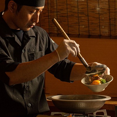 基本は夕食時の盛付や仕込みの準備、営業中はライブキッチンコーナーでお客様の目の前で