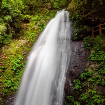 雄略天皇を虻(アブ)から救った蜻蛉(トンボ)伝説から命名された、高さ約50mの水量豊かな滝です。