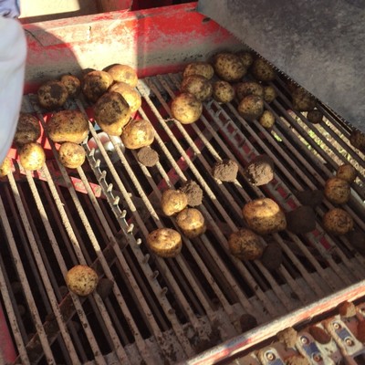 ・ジャガイモの収穫にはポテトハーベスターという収穫機械に乗って作業する場合もあります。