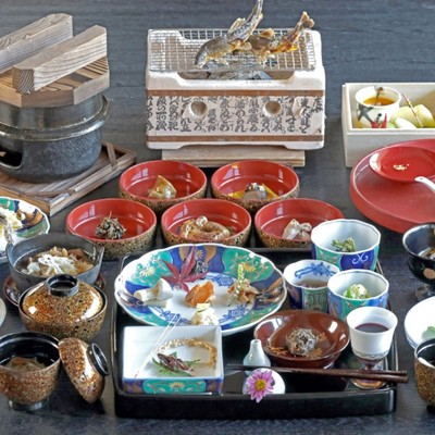 山形県のど真ん中に位置する「月山(がっさん)」の麓で、95年の歴史をもつ小さな料理宿です。