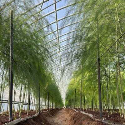 ビニールハウスの中で栽培している、アスパラガスの枝を鎌で切ってハウスの外へ出す作業と、ガスバーナーを用いて、畑の表面を焼く作業をお願いします。