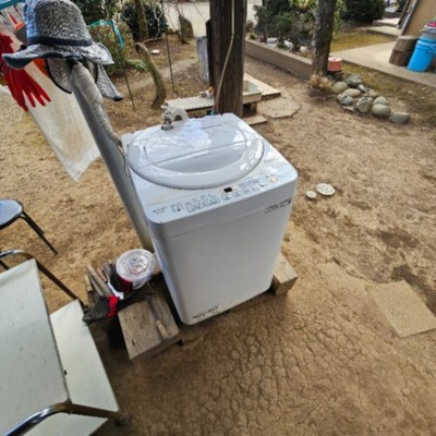 洗濯機。乾燥機はありません。洗濯竿やハンガーを貸し出します。節水のため作業着や手袋など作業で汚れたもののみ、量によっては合同での洗濯となります。あらかじめご了承ください。空いている時間はいつでもご使用ください。