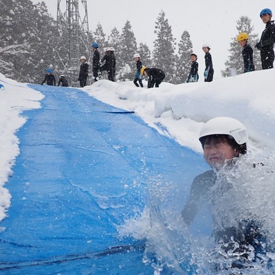 【3日間】豊かな自然と果物が有名な大江町で”スノーウォータースライダー”の体験補助のおてつたびをしませんか?薪ストーブピザも食べられます♪(おためし地域おこし協力隊)