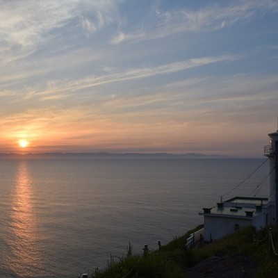 角田岬灯台角田岬に立つ、高さ約13メートルの白い灯台です。砂浜から灯台へと登る階段が設置されており、そこから見渡す日本海は壮観です。