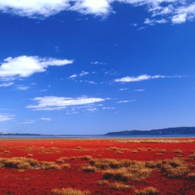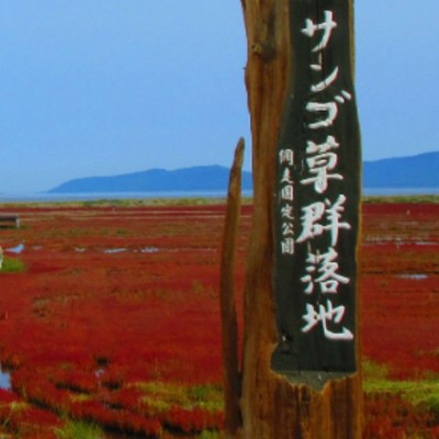 旅館目の前に広がるさんご草群落地、9月になると赤く染まる絶景観光スポットです。