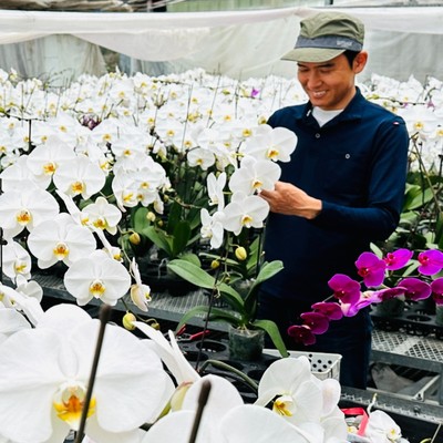 私たちは胡蝶蘭などの洋蘭を生産し、ネットショップで販売してお届けまでしており、いつも20人が働いてくださっているにぎやかな農園です。