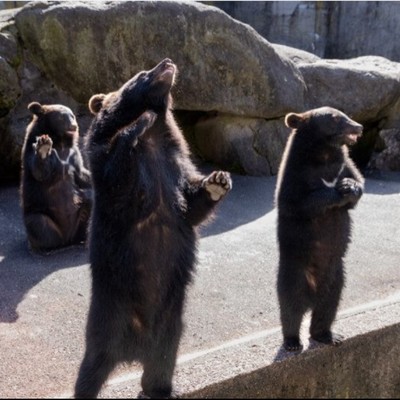 奥飛騨クマ牧場/【ひらゆの森から車で約10分】/100 頭余りの熊が冬眠をしないで、年中、見学ができます。 熊にエサを与える「おやつやり体験」や、コグマと一緒に記念撮影(期間限定)を体験する事ができます。