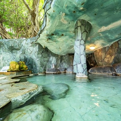 ・ホテルの目の前に広がる山川港から約100メートル沖合の海底から汲み上げられた温泉に毎日お入り頂けます。