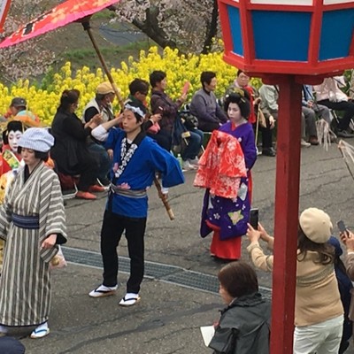 分水おいらん道中全国から約9万人が訪れる、燕市最大のイベント。おいらんの他に、ほうかんや傘持ちを含め、総勢約70名が練り歩く。
