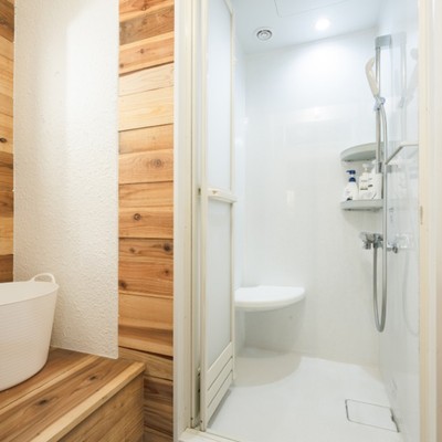 お部屋は男女混合ドミトリールームの上段をご用意しています。カーテンで仕切れてプライベート空間もあるので女性の方もご安心ください。トイレ、シャワールームは共有になります。