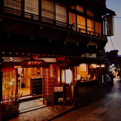 ノスタルジックな情緒あふれる石畳の温泉街、宿泊者が楽しめる九つの外湯巡りなどが好評。宿のお風呂は天然かけ流し湯。贅沢なお風呂を満喫できます。
