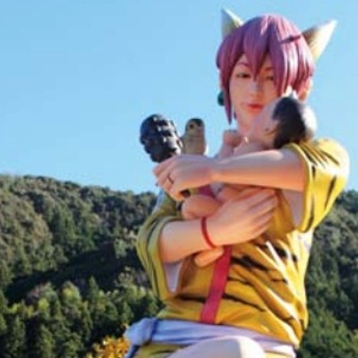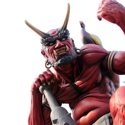 鬼王丸「道の駅森の三角ぼうし」に設置されている鬼のモニュメント。全長5m、町の「鬼のまちづくり」のシンボルとなる恐ろしい風貌をした赤鬼です。額には2本の角が生え、頑丈そうな金棒を持ち、肩には特産品のきじが乗っている。