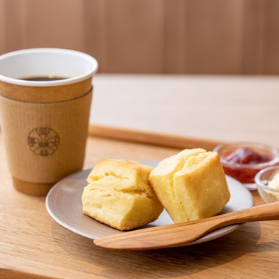 カフェでは、ドリンクと軽食の簡単な盛り付けから提供を行います。