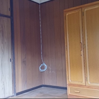 ②ドア入口の反対方向から見た部屋(8畳)です。右側(入口からは左側)に箪笥1があります。