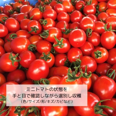 <ミニトマトを目で見て選別→収穫>
