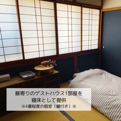 提携している管理人常駐型のゲストハウスの1部屋が寝床になります。