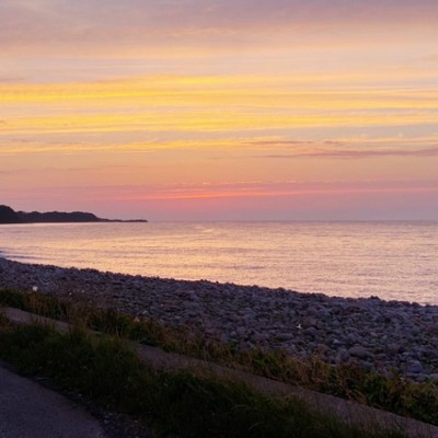 【絶景の夕陽が毎日見れます・鳴り石の浜】海にも面した琴浦町には、大小様々な楕円形の石が集積した鳴り石(なりいし)の浜という自然海岸があります。日本海の荒波に丸石がもまれて「カラコロ」と音をたてる珍しい浜で四季折々の表情をみせてくれます。“よく鳴る”浜であることから、“良くなる”浜と験(げん)を担ぎ、縁起の良いパワースポットでもあります。