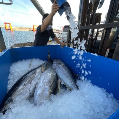 お客様に餌の付け方をレクチャーしたり、お祭りをほどいたりサポートする作業をメインにお願いします。お客さんがいない時にはマグロ狙いの一本釣り漁の助手をしてもらいます。その他にも漁業道具の準備や片付けなどもお願いします。