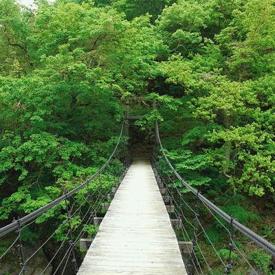 見倉橋:オダギリジョー主演映画「ゆれる」や綾瀬はるか主演ドラマ「精霊の守り人」の舞台になった場所。橋から見える中津川渓谷の青と、春は木々の豊かな緑が、秋は鮮やかな紅葉がこれ以上ない景色を作り上げます。新潟の橋50選にも選ばれているこの橋は、秋山郷を代表する観光スポットです。