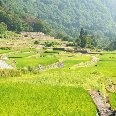 石垣田:明治期より集落の人々が飢餓対策の為に作り上げてきた場所。土の中には石がたくさん埋まっており、耕すにはかなりの苦労をしたそうです。しかし、その出来映えはペルーのマチュピチュのように美しく、地域の文化的遺産として大切に残されてきました。現在は、その景観の美しさから全国農村景観百選にも選ばれています。