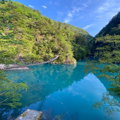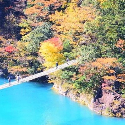 当旅館からつり橋まで歩いて約20分です。つり橋を渡って尾崎坂展望台、飛龍橋を回って寸又峡渓谷を一周するプロムナードコースは、約90分かかります。
