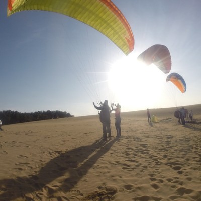・鳥取砂丘以外に、山からの高高度フライト(落差280m)の単独飛行も可。