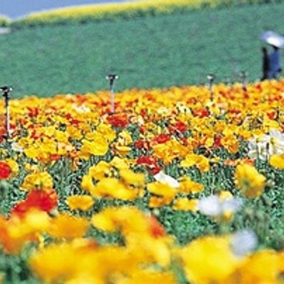 観光農園花ひろば一面が同じ種類で埋まるお花畑はそれはそれは見事で、貴重な景観となるため映画やTV撮影などに使われ、情報番組の取材でも取り上げられています。ぜひカメラ持参で出かけましょう。そして嬉しいのはただただ見ているだけでなく、花摘みができること(一人10本まで。ひまわりは5本まで。但し小学生以下の方は対象外)。