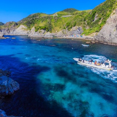 リヒゾ浜船でしか行くことのできない独特の地理的環境から、ありのままの自然が残された場所です。貴重なエダサンゴも群生しており、伊豆半島ジオパークとして登録されている景観豊かな場所です。渡し船の出ている中木まで車で約20分