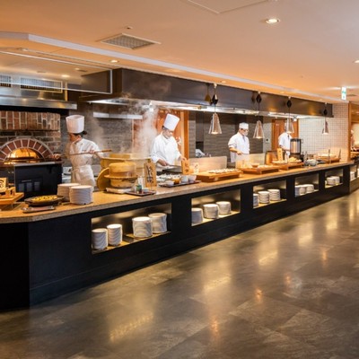 バイキングレストランは200名規模と大きく、トップシーズンには400名を超える日もあります。