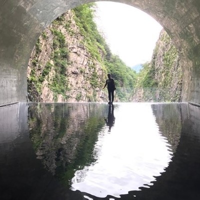 大地の芸術祭人気ナンバー1スポット「清津峡渓谷トンネル」自然とアートが融合した人気の施設。パノラマステーションでは水鏡に映り込んだ大峡谷が広がる幻想空間が楽しめます。(当館より車で35分)