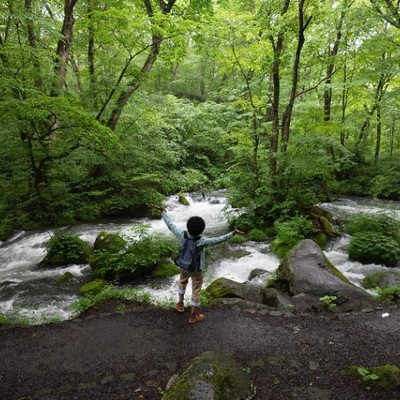 原生的な自然が広がる奥入瀬渓流。車で簡単にアクセスできます。